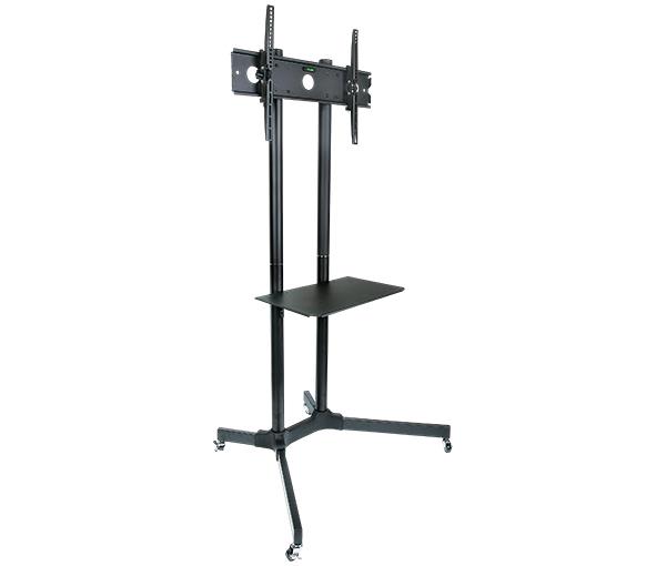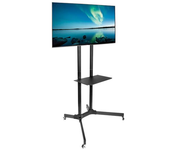 SPEED 30″-65″ Trolley AV Stand, Up to VESA 600×400 and 60kg Load, Media Shelf, Height Adjustable, +/- 15 Degree Tilt, Cable Management, Black, Lifetime Warranty