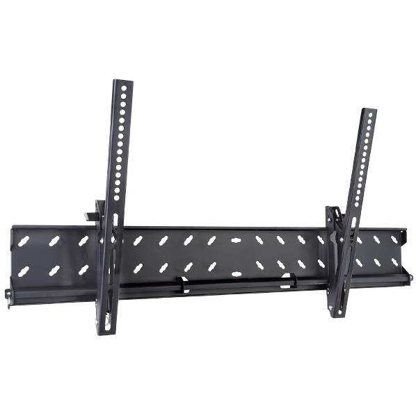 Heavy-duty Tilt TV wall bracket suitable for VESA compatible TVs. Incremental tilt system allow adjustment of up to 15 degrees for the optimal viewing angle. Featuring Smart Locking System with side mounting holes for perfect horizontal adjustment during installation. Secure locking system offers peace-of-mind when installing TV in a public area.